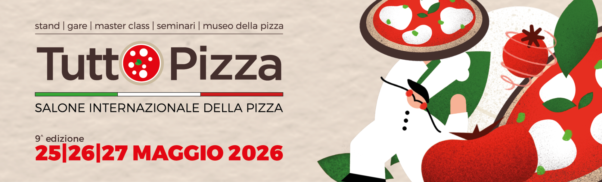Tuttopizza è la Fiera internazionale della pizza che ti permette di aggiornarti ed informarti su tutte le novità che riguardano l’universo pizza. Dedicata a tutti gli coloro che lavorano o intendono avviare un’attività di pizzeria, è dal 2016 il più importante luogo di incontro tra fornitori ed imprenditori Ho.Re.Ca. nel ramo pizzeria. Sei un pizzaiolo o sei titolare di una pizzeria? Sei in cerca di un’idea per sviluppare o innovare il tuo business? Tuttopizza è l’evento che fa per te: registrati subito per partecipare gratuitamente alla Fiera.